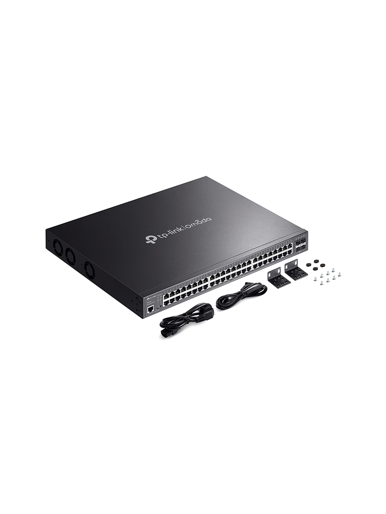 TP-LINK SG6654XHP – Switch Omada L3 Stackable de 48 puertos POE+ Gigabit y 6 puertos SFP+ 10G , 1440W , Stacking físico , Funciones L3 Enterprise. RIP, OSPF, ECMP, VRRP, PIM-DM, DHCP Server/Relay , Alta disponibilidad , VRRP y ERPS , Interfaz WEB , CLI.