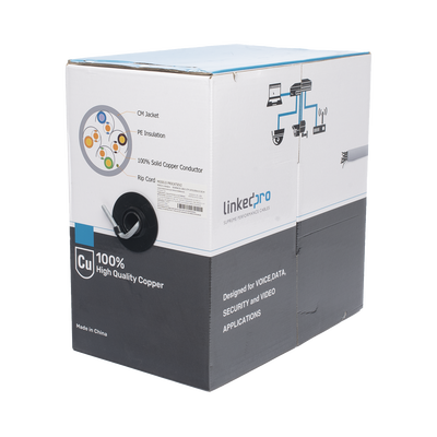 Bobina de cable de 305 metros Cat6, CM, 24 AWG, Alto Rendimiento, ETL, UL, color azul, super flexible, para aplicaciones de videovigilancia, video HD, y redes de datos. Uso interior