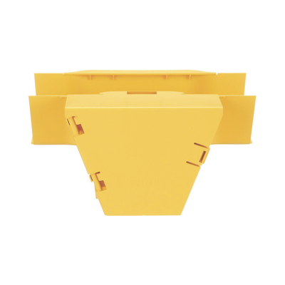El accesorio en T vertical de 4×4 FiberRunner® se conecta a una canaleta y/o accesorio de 4×4 para crear una caída vertical de 90° desde un tramo horizontal. Incluye tapas con bisagras. La conexión en T vertical requiere un acoplador para conectar a tapas con salidas a tubo de 3 puertos a una salida vertical. Acepta la cubierta a presión opcional junto con la canaleta.