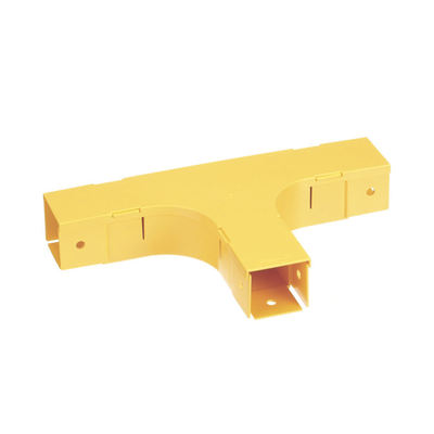 La T horizontal FiberRunner® 2×2 se conecta al canal 2×2 y/o accesorios para crear una rama horizontal de 90° a partir de un tramo horizontal recto.
