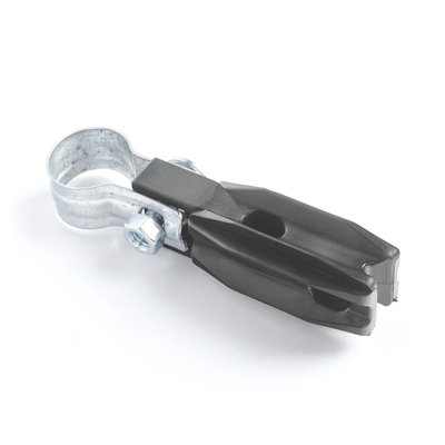 Aislador de paso o esquina con abrazadera de 1′ diametro para uso en poste de cerca electrica.