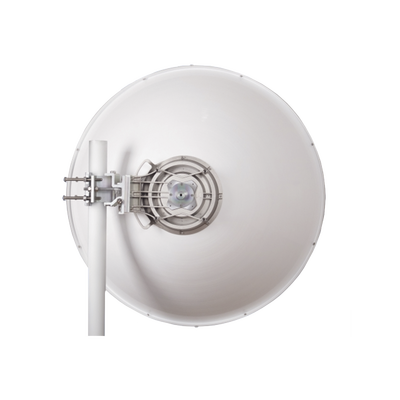 La antena parabólica de doble polarización JRC-35 Deep Dish MIMO Precision MimX está diseñada para enlaces con unidades de radio C5x, B5x y C6x de doble polarización en la banda de frecuencia de 5/6 GHz. Esta antena está diseñada para entornos con múltiples reflexiones a largas y medias distancias en condiciones difíciles. Su diseño de plato profundo aumenta el aislamiento entre antenas en un mástil y aumenta la relación anteroposterior. Este nuevo concepto amplía la banda de frecuencia. La JRC-35DD MIMO Precision MimX incluye un soporte robusto diseñado para enlaces de microondas.
