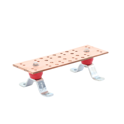 Barra de unión de Puesta a Tierra Principal para Telecomunicaciones fabricada en cobre, su principal función consiste en brindar puntos de conexión de las diferentes aplicaciones conectadas que se desean proteger hacia un sistema de puesta a tierra común, el cual puede conformarse de uno o más electrodos de puesta a tierra.