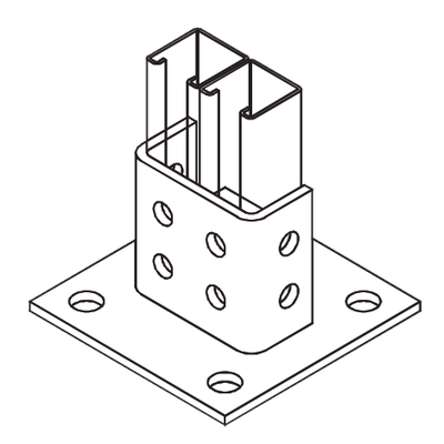 Base Cuadrada con 4 perforaciones para Perfil Doble.