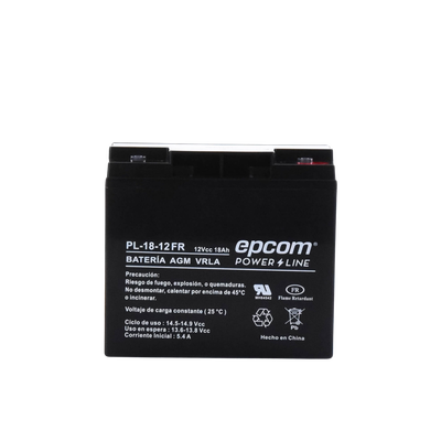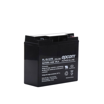 La serie de baterías EPCOM POWERLINE, están diseñadas con tecnología AGM-VRLA (Fibra de vidrio absorbente, con válvulas de regulación), placas de alto rendimiento y electrólito para proporcionar una salida de energía adicional. Las baterías de la serie EPCOM POWERLINE son baterías de respaldo para equipos electrónicos, con una vida útil de diseño flotante de 5 años a 25°C, aprobado por UL (MH64542).