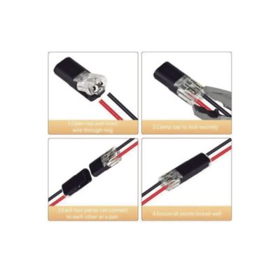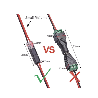 Práctico y ordenado: El conector es compatible con cables sólidos de 0.35 a 0.75 mm² / AWG18 a AWG22. No abultan tanto en los extremos de los cables, lo que permite mantener las cajas eléctricas relativamente espaciosas y evita tener que torcer varios cables de cobre juntos.