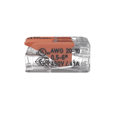 Bornes de conexión con palancas de la Serie 221 diseñados para conexiones eléctricas rápidas y seguras. Utiliza tecnología CAGE CLAMP® que permite la conexión de todos los tipos de conductores (rígidos, semirrígidos y flexibles) con secciones desde 0.5 hasta 6 mm². Ideal para instalaciones eléctricas profesionales en cajas de derivación, sistemas de iluminación de baja tensión y distribución de cableado en aplicaciones residenciales e industriales. Cumple con normativas internacionales incluyendo EN 60998, UL 486C y certificaciones marinas ABS, DNV GL y LR.