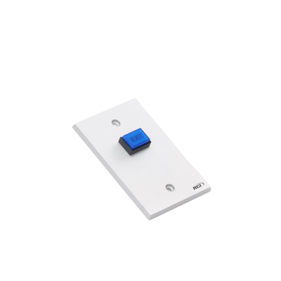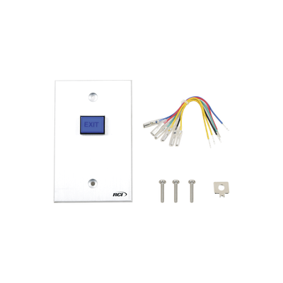 La placa de aluminio extruido de 1/4′ con bordes biselados ofrece alta durabilidad y protección contra robo. El botón azul ‘Exit’ está iluminado con reborde negro y funciona con un foco incandescente de larga duración de 12 Vcc a 24 mA.