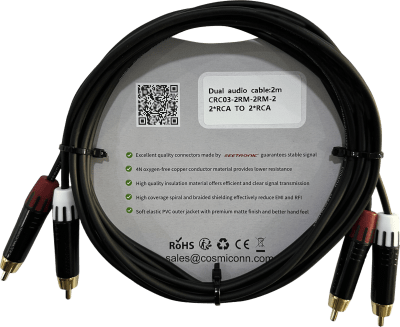 Cable 2 RCA x 2 RCA, conectores negros, con diferenciador de blanco y rojo (2x MT380-RD – 2x MT380-WH), length 2m