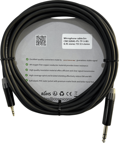 Cable 6.35mm a 3.5mm, conectores color negro MP3X-B – MTP3C-BG, length 5m