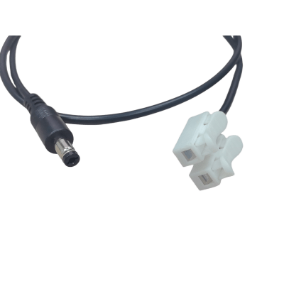 Se utiliza para conectar cámaras de seguridad a su sistema de distribución de energía o adaptadores de energía. Cuenta con un enchufe macho en un extremo y dos cables desnudos en el otro. Las cubiertas de alambre rojo y negro indican polaridad.