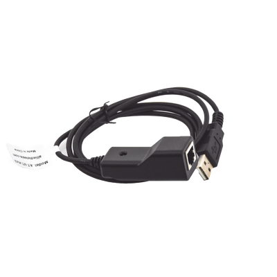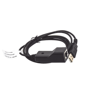 El cable de administración VT-Kit3 es un convertidor de USB a Serie con un conector USB-A macho y un receptor RJ-45 hembra.