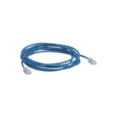 Los cables de parcheo de categoría 6/Clase E, UTP, de diámetro reducido están construidos con cable de cobre de par trenzado sin blindar calibre 28 AWG (CM/LSZH de doble clasificación), con plugs modulares RJ45 de alto rendimiento. Los cables de conexión se ofrecen en múltiples longitudes y colores para flexibilidad de diseño.