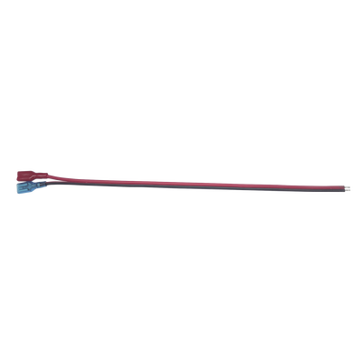 Cables en Paquete Dual / Cable Rojo y Negro / 30 cm (11.81 Pulgadas) / Terminal F1 en un Extremo / Puntas Libres en el Otro / Conexión a Baterías de Respaldo