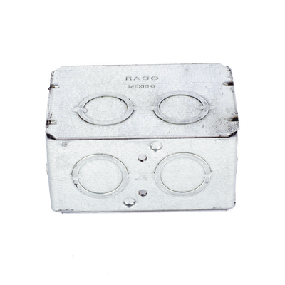 Las cajas multigang de acero galvanizado de 2 1/2′ de profundidad con entradas para tubería de 1/2′ y 3/4′.