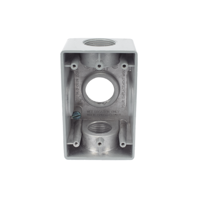 Caja Condulet FS de 1″ (25.4 mm ) con tres bocas una arriba y una atrás a prueba de intemperie.