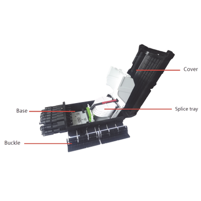 Las cajas FDP-430D se pueden usar como caja de distribución de fibra o cajas terminales de acceso. Está diseñada para enterrado directo o para instalación en registros subterráneos o ductos que pueden mantener los componentes internos alejados del daño ambiental exterior y proporcionar un punto de acceso protegido. La fibra de distribución se puede empalmar con un splitter y las salidas con cable drop.
