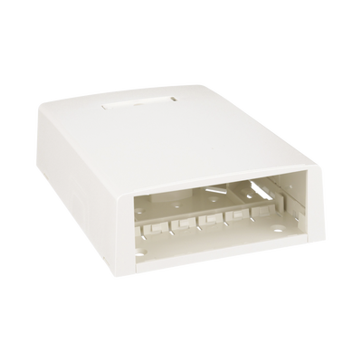 Caja de Montaje en Superficie, con Accesorio para Resguardo de Fibra Óptica, para 12 Módulos Mini-Com, Color Blanco Mate