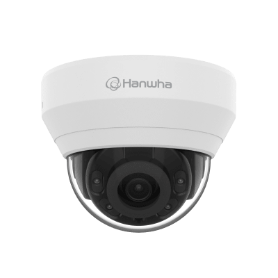 La cámara domo QND-7022R de Hanwha Vision es una solución de vigilancia profesional de 4 megapíxeles diseñada para aplicaciones exteriores. Con tecnología IR que proporciona visión nocturna hasta 20 metros, lente fijo de 4mm y amplio dynamic range de 120dB, ofrece imágenes claras en diversas condiciones de iluminación. Compatible con PoE y certificación IP67, es ideal para sistemas de seguridad empresariales e institucionales.