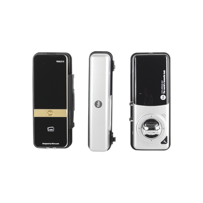 Cerradura digital con efecto espejo, la pantalla táctil se ilumina hasta que el usuario toca la pantalla, esto aumenta la seguridad ya que se puede ver si hay alguien detrás al momento de activar la cerradura.