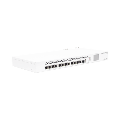CCR1016-12G es un enrutador de grado industrial con una CPU de 16 núcleos de última generación. Si necesita muchos millones de paquetes por segundo, Cloud Core Router es su mejor opción. La unidad está equipada con 12 puertos Gigabit Ethernet y LCD con pantalla táctil a color.