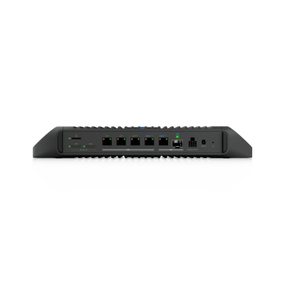 Cloud Gateway Industrial Rugerizado sin Ventilador con Puertos 10 GbE, 350W de Potencia Total para Despliegues PoE de Alta Densidad, Enrutamiento Avanzado y Almacenamiento microSD para Aplicaciones UniFi