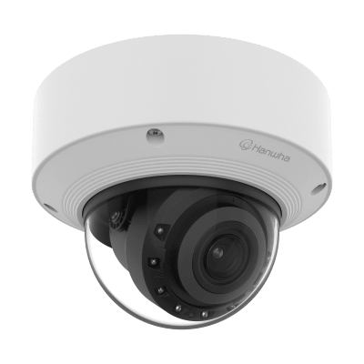 Cámara Domo AI IR 5MP / Motorizado Varifocal 3.3~9.3mm / Doble NPU / Análisis Inteligente / WDR 120dB / IR 50m / IP52 IK10 / PoE / Wisenet 9