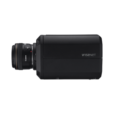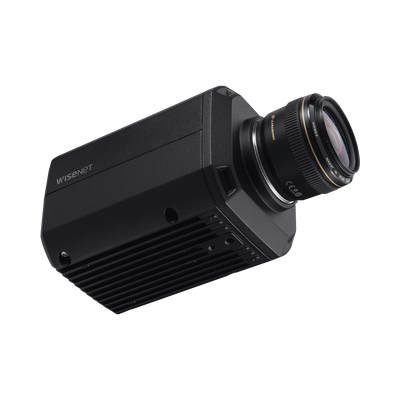 La cámara H.265 Wisenet TNB-9000, utiliza un sensor CMOS de tamaño completo de 43,3 mm para capturar imágenes de 8K verdaderas a 15 imágenes por segundo. Tiene analítica de vídeo basada en Deep Learning: esto permite detectar y clasificar simultáneamente varios tipos de objetos, entre ellos personas, vehículos, caras y matrículas.