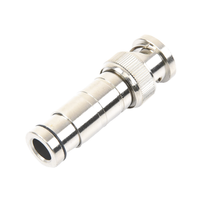 Conector BNC Macho en 75 Ohm, de Compresión Axial para Cable Coaxial RG-59/U, Níquel/ Oro/ Politetrafluoroetileno.