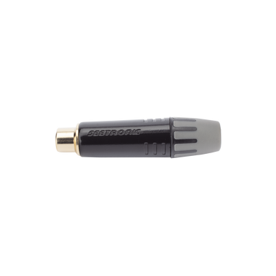 • Conector RCA profesional, carcasa chapada en negro, contacto chapado en oro