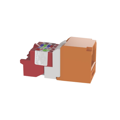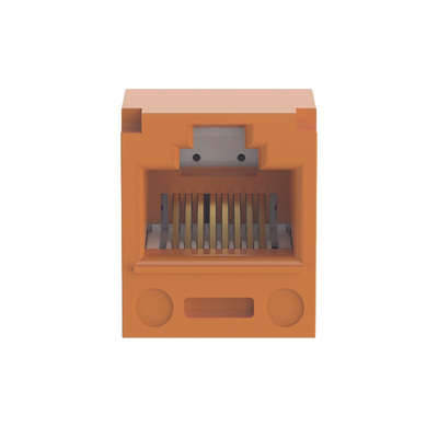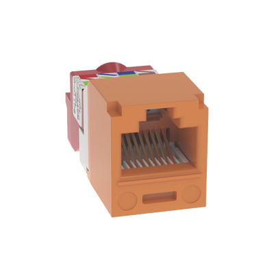 Conector Jack RJ45 Estilo T, Mini-Com, Categoría 5e, de 8 Posiciones y 8 Cables, Color Naranja