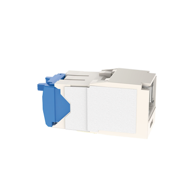El módulo de conector UTP Categoría 6A/Clase EA de 8 posiciones, se termina en cable de 4 pares 22 – 26 AWG de par trenzado sin blindaje de 100 ohms y no requiere el uso de una herramienta de impacto. Los módulos de conector UTP usan un método de terminación de movimiento hacia adelante para optimizar el rendimiento al mantener la geometría del par de cables mientras se elimina el destrenzado del conductor. La tapa de terminación esta codificada por color blanco para designar el rendimiento de la Categoría 6A e incluye una etiqueta universal codificada para los esquemas de cableado T568A y T568B.