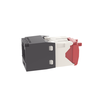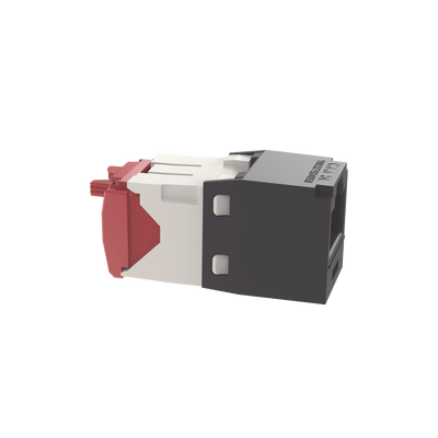 El módulo de conector UTP Categoría 5e/Clase D de 8 posiciones, se termina en cable de 4 pares 22 – 24 AWG de par trenzado sin blindaje de 100 ohms y no requiere el uso de una herramienta de impacto. Los módulos de conector UTP usan un método de terminación de movimiento hacia adelante para optimizar el rendimiento al mantener la geometría del par de cables mientras se elimina el destrenzado del conductor. La tapa de terminación esta codificada por color blanco para designar el rendimiento de la Categoría 6 e incluye una etiqueta universal codificada para los esquemas de cableado T568A y T568B.