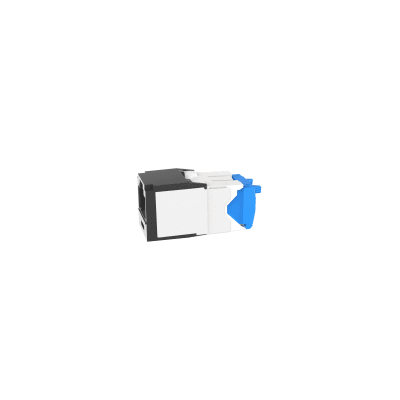 El módulo de conector UTP Categoría 6A/Clase EA de 8 posiciones, se termina en cable de 4 pares 22 – 26 AWG de par trenzado sin blindaje de 100 ohms y no requiere el uso de una herramienta de impacto. Los módulos de conector UTP usan un método de terminación de movimiento hacia adelante para optimizar el rendimiento al mantener la geometría del par de cables mientras se elimina el destrenzado del conductor. La tapa de terminación esta codificada por color blanco para designar el rendimiento de la Categoría 6 e incluye una etiqueta universal codificada para los esquemas de cableado T568A y T568B.