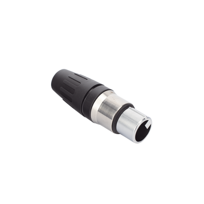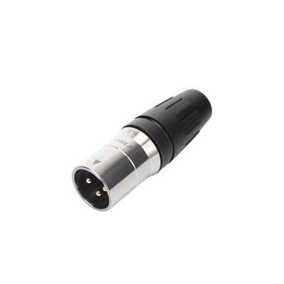 - Conector hembra XLR de 3 núcleos con carcasa de acero inoxidable y contactos chapados en oro