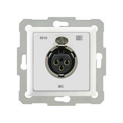 Modulo o mando de pared para empotrar o superficie para cajas de 60mm, con entrada hembra de cannon o XLR y salida a través de regletas, para señales de audio línea o micrófono, balanceado. Dispone de chasis zincado y carcasa en color blanca..