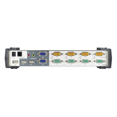 Integra funciones de salida dual de señal de vídeo y conmutadores KVM USB. Permite que una computadora compatible con pantalla dual se empareje con dos pantallas VGA/SVGA/Multisync a través de un teclado y un mouse USB. Proporciona 1 puerto USB en cada uno de los paneles frontal y posterior, lo que permite que cada servidor comparta cualquier dispositivo periférico USB que esté conectado a este HUB.