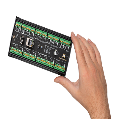 El Arduino Portenta Machine Control es un controlador industrial profesional diseñado para aplicaciones de Industria 4.0 y automatización de máquinas. Basado en el microcontrolador STM32H747XI con núcleos duales Cortex-M7 a 480 MHz y Cortex-M4 a 240 MHz, ofrece un rendimiento computacional avanzado para control en tiempo real. Cuenta con 2 MB de memoria Flash, 1 MB de RAM, 8 MB SDRAM y 16 MB Flash QSPI para almacenamiento. El sistema incluye protección contra polaridad inversa, elementos de seguridad NXP SE0502 y está diseñado para operar en entornos industriales exigentes con rango de temperatura de -40°C a 85°C. Ideal para procesamiento de alimentos, fabricación de botellas de vidrio y aplicaciones de packaging industrial.