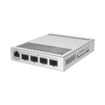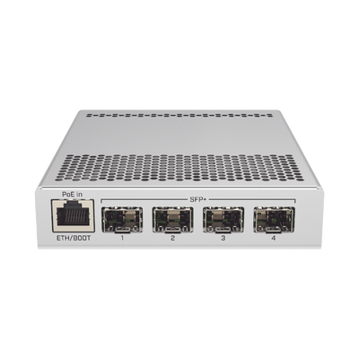 El CRS305 es un switch compacto pero muy potente, con cuatro puertos SFP+, para hasta 10 Gbit por puerto.