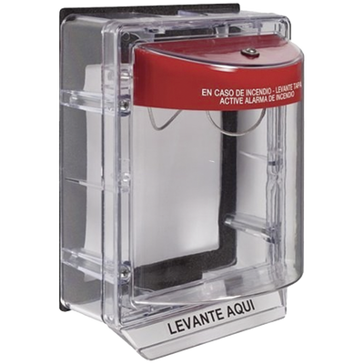 Cubierta Protectora de Policarbonato Serie Stopper IIÆ, Con Bocina, Con Espaciador, Montaje Empotrado, Etiqueta en Español, IP54