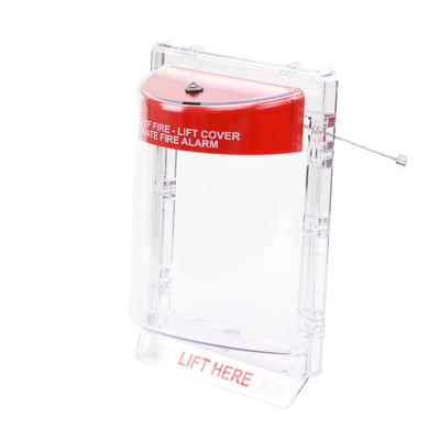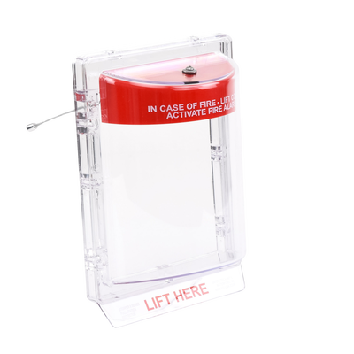 La serie de cubiertas Stopper II® consta de una resistente cubierta de policarbonato transparente que es inviolable y un armazón que se ajusta sobre las estaciones de palanca operadas manualmente. Cuando se levanta la tapa de la cubierta para tener acceso a la palanca, suena una aguda alarma de advertencia de 95 o 105 dB, que llamará la atención de inmediato a esa área y el bromista será atrapado.