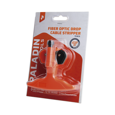 La desforradora de fibra drop TCDCS de Paladin es una herramienta resistente y compacta que se utiliza para pelar cables drop de fibra óptica estándar de 8.1 mm.