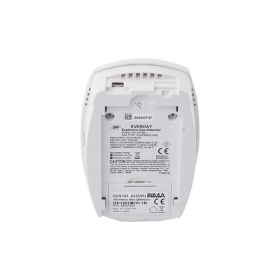 DGS es alimentado por un transformador de 220V CA (Corriente Alterna), que se conecta con un cable micro USB (incluido). La batería del detector solo es utilizada para monitorear y alertar al panel de control sobre la pérdida de alimentación de CA.