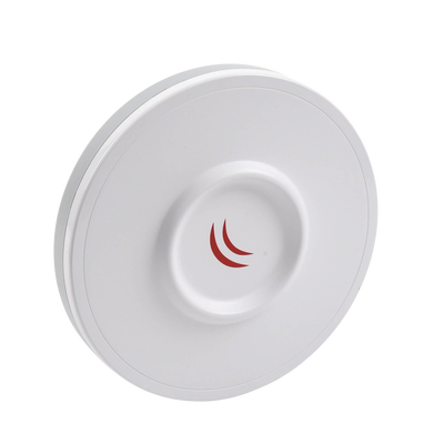 DISC Lite5 es un CPE 802.11n de doble cadena integrado de 21dBi con una CPU de 600 MHz, 64 MB de RAM, 1 puerto Ethernet de 10/100 Mbps y RouterOS L3 instalado. El DISC utiliza una antena de tipo backfire que permite alcanzar una ganancia de 21dBi en un paquete tan compacto y de bajo costo.