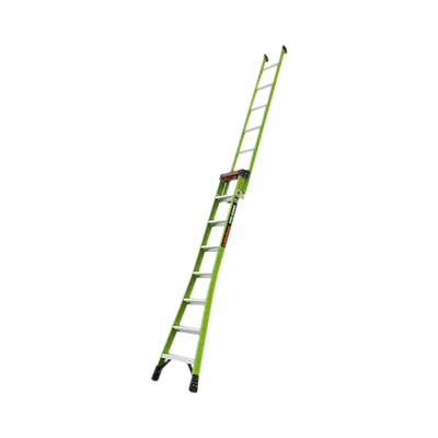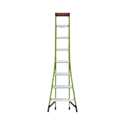 - Fibra de vidrio no conductora y de color verde intenso: Es el sueño de un electricista hecho realidad. Fabricado con fibra de vidrio ligera y duradera, puede trabajar cerca de la electricidad sin temor a la conductividad. El color verde de alta visibilidad también promueve una mayor visibilidad para disminuir los golpes de la escalera.