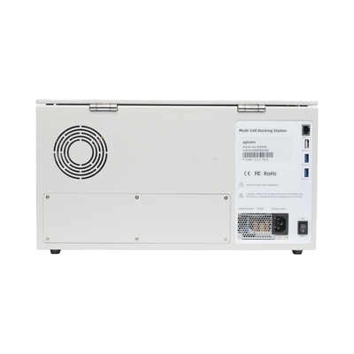 Estación para BodyCam, realiza la descarga de información y carga de batería simultáneamente, la estación se conecta por Ethernet para la descarga de información a el servidor central dedicado (FTP).