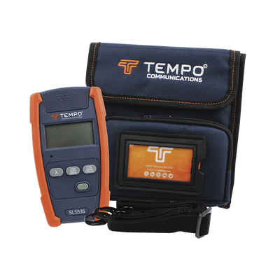 Las fuentes de luz estabilizada para fibra óptica de Tempo Communications (SLS520, SLS525, SLS530, SLS535, SLS536) están disponibles en láseres de longitud de onda doble, triple y LED de longitud de onda doble. Es posible realizar mediciones precisas de la pérdida de inserción cuando se utiliza junto con los medidores de potencia óptica Tempo Communications. Al colocar tonos en la fibra, el medidor de potencia óptica Tempo Communications identificará rápidamente la fibra.