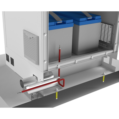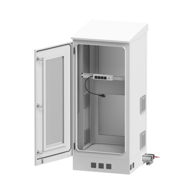 Gabinete de Piso para Exterior con Ventiladores y Termostato con Rack de 19″ de 16 U + Espacio para Baterías, Se envía el Gabinete Armado.