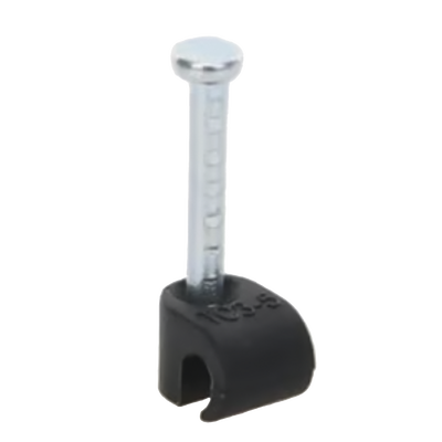 • Grapas con clavo integrado para sujetar Fibra óptica redonda a muros o techos en interiores.