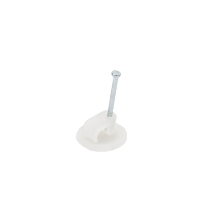 - Grapas con clavo integrado para sujetar conductores planos a muros o techos.